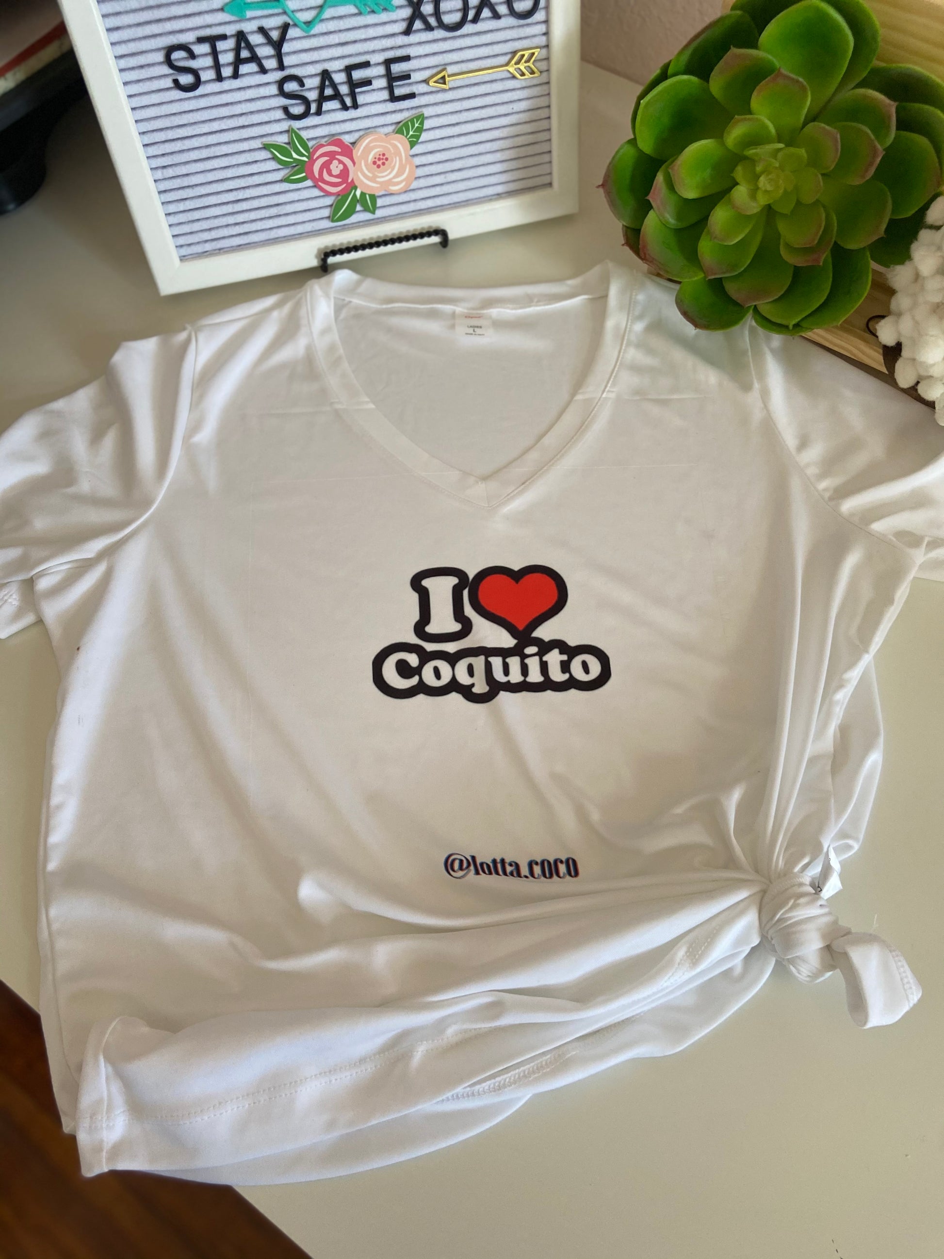 - Women's V-Neck T-Shirt 63% polyester 33% rayon, and 4% spandex.