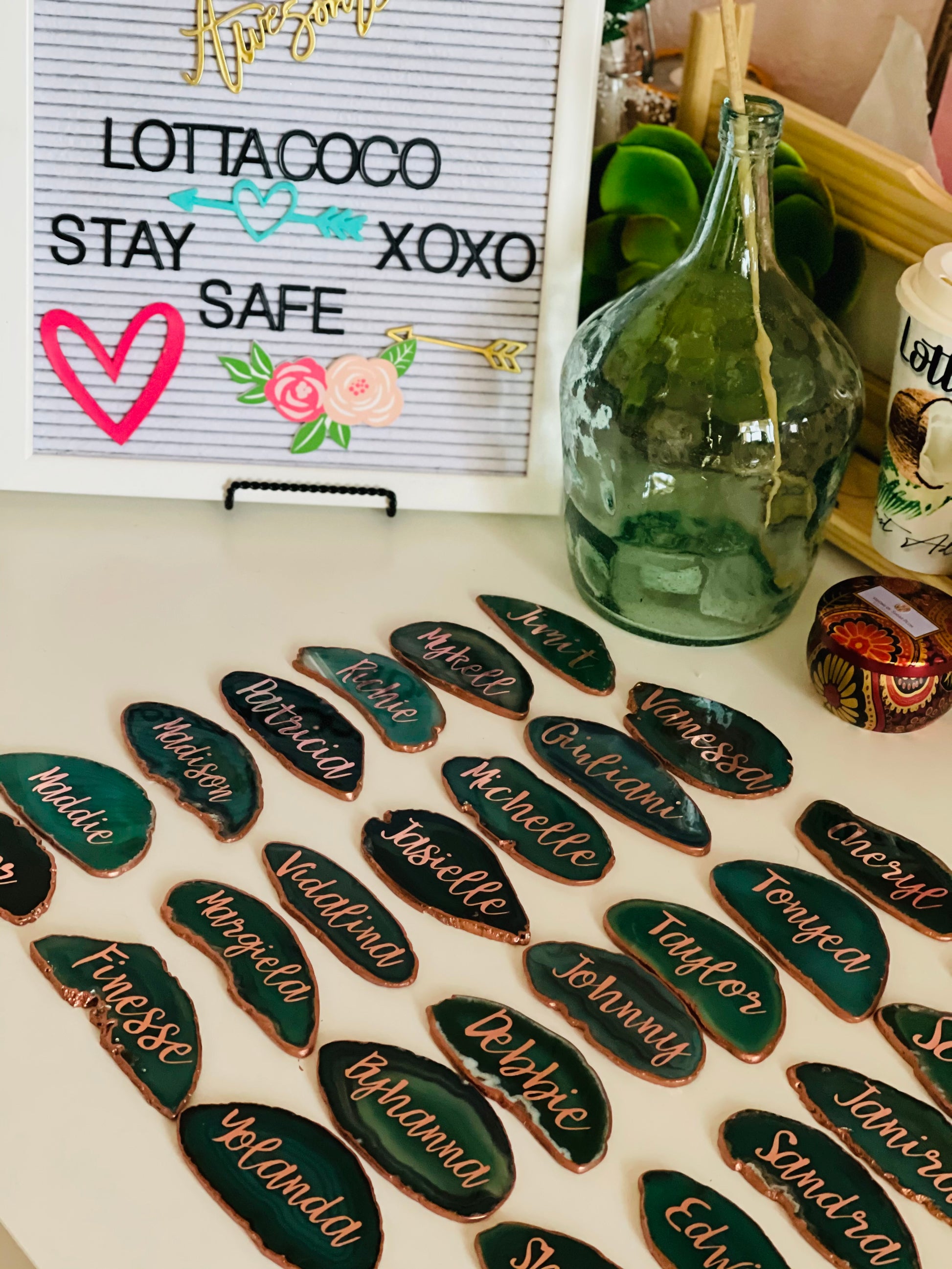 - Natural Real Agate Slices available in natural white, black, green, red, and teal blue.